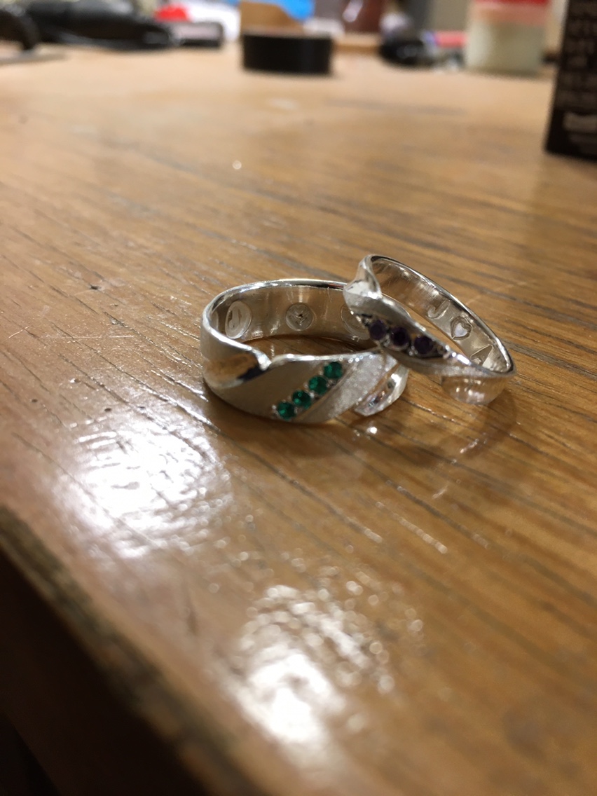 나는 초록빛, 에메랄드 빛이나는 큐빅을 선택했고 여자친구는 보라색으로 골랐다